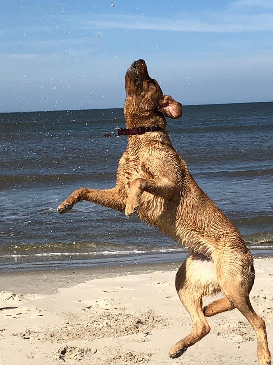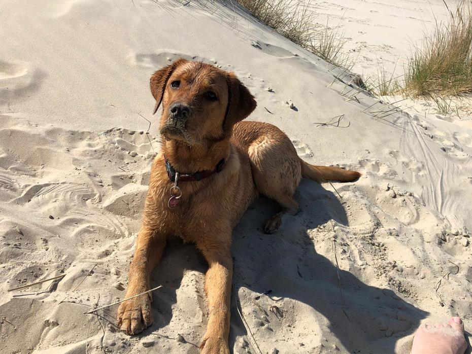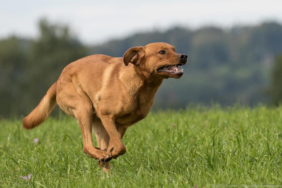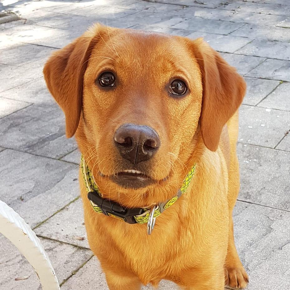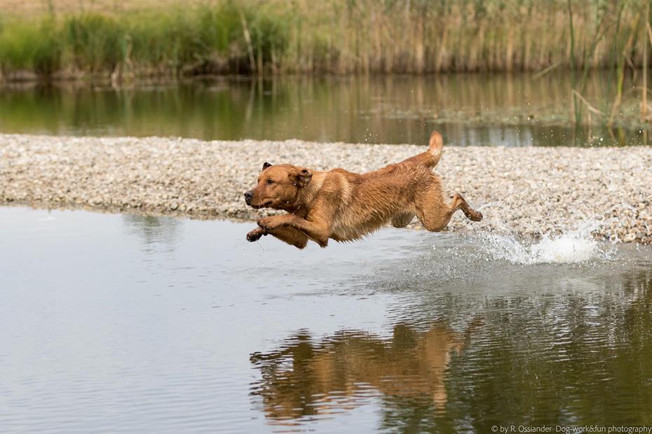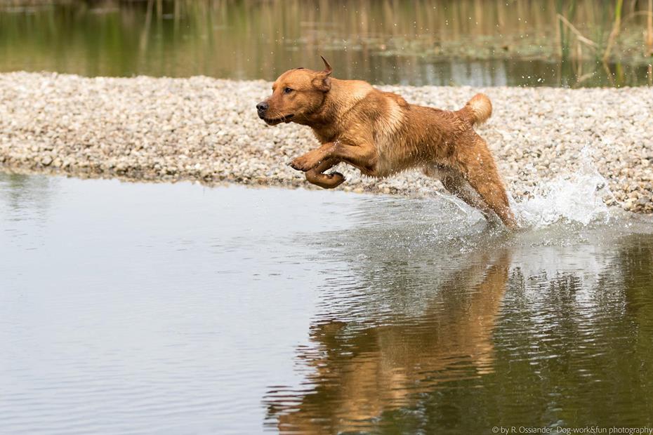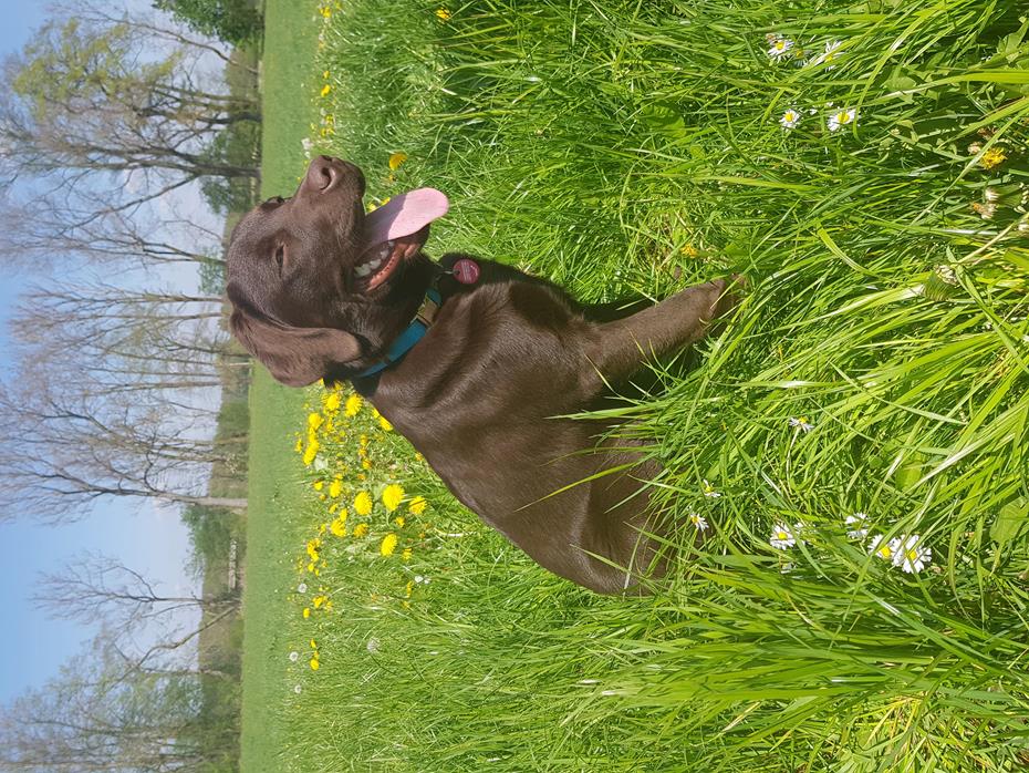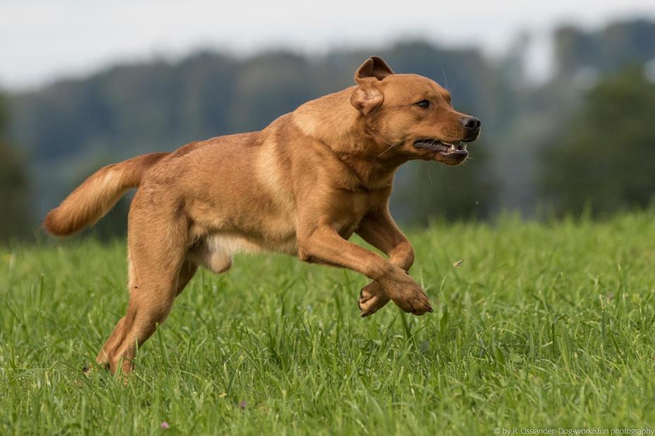 Ein ruhiger, ausgeglichener Jungrüde mit sehr ansprechendem Kopf, ovale dunkelbraune Augen, braun-schwarzer Nasenspiegel mit freundlichem Gangwerk und ausgeprägter Otterrute.