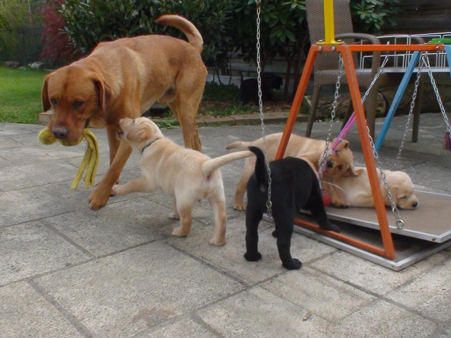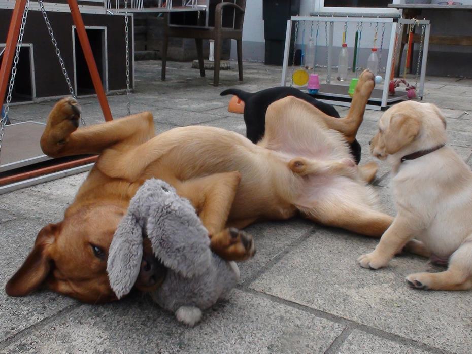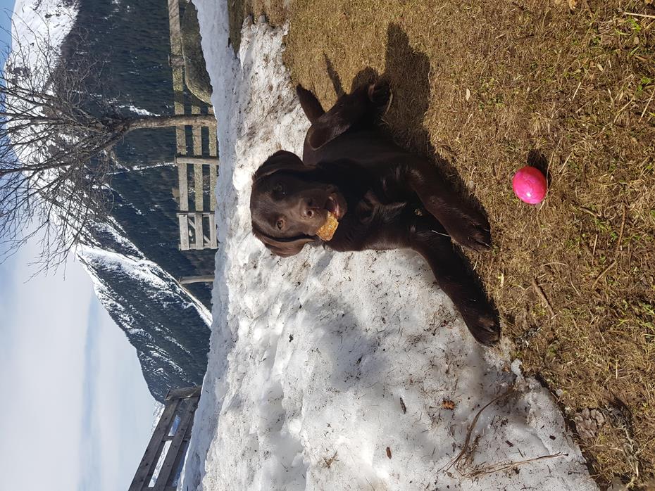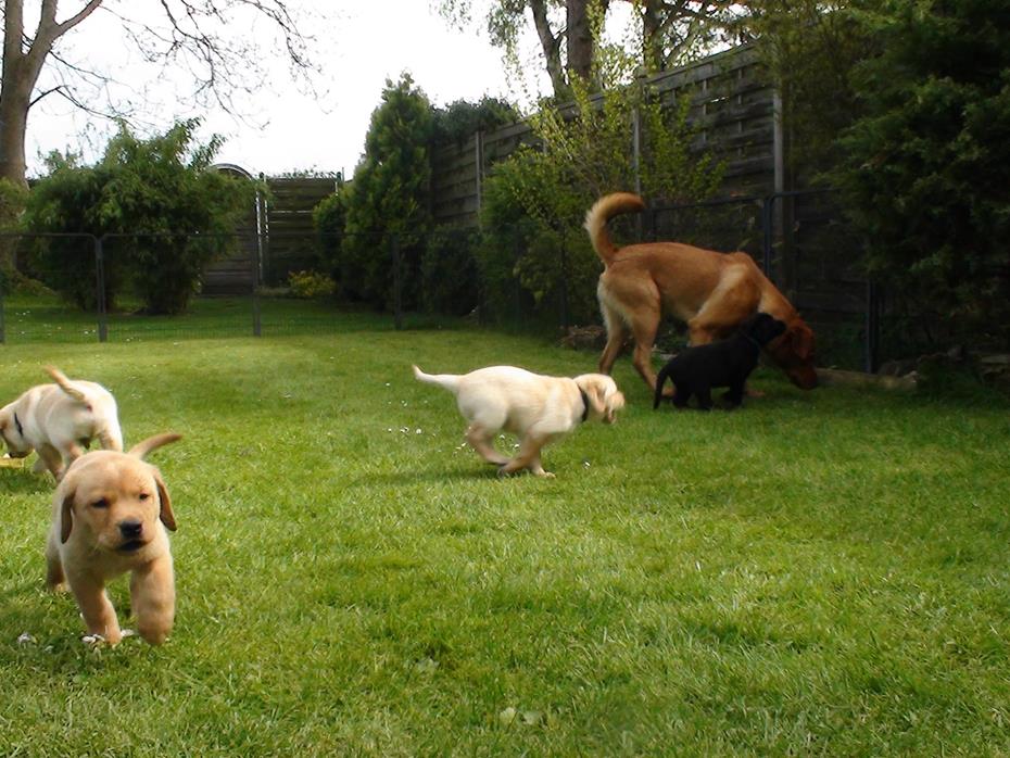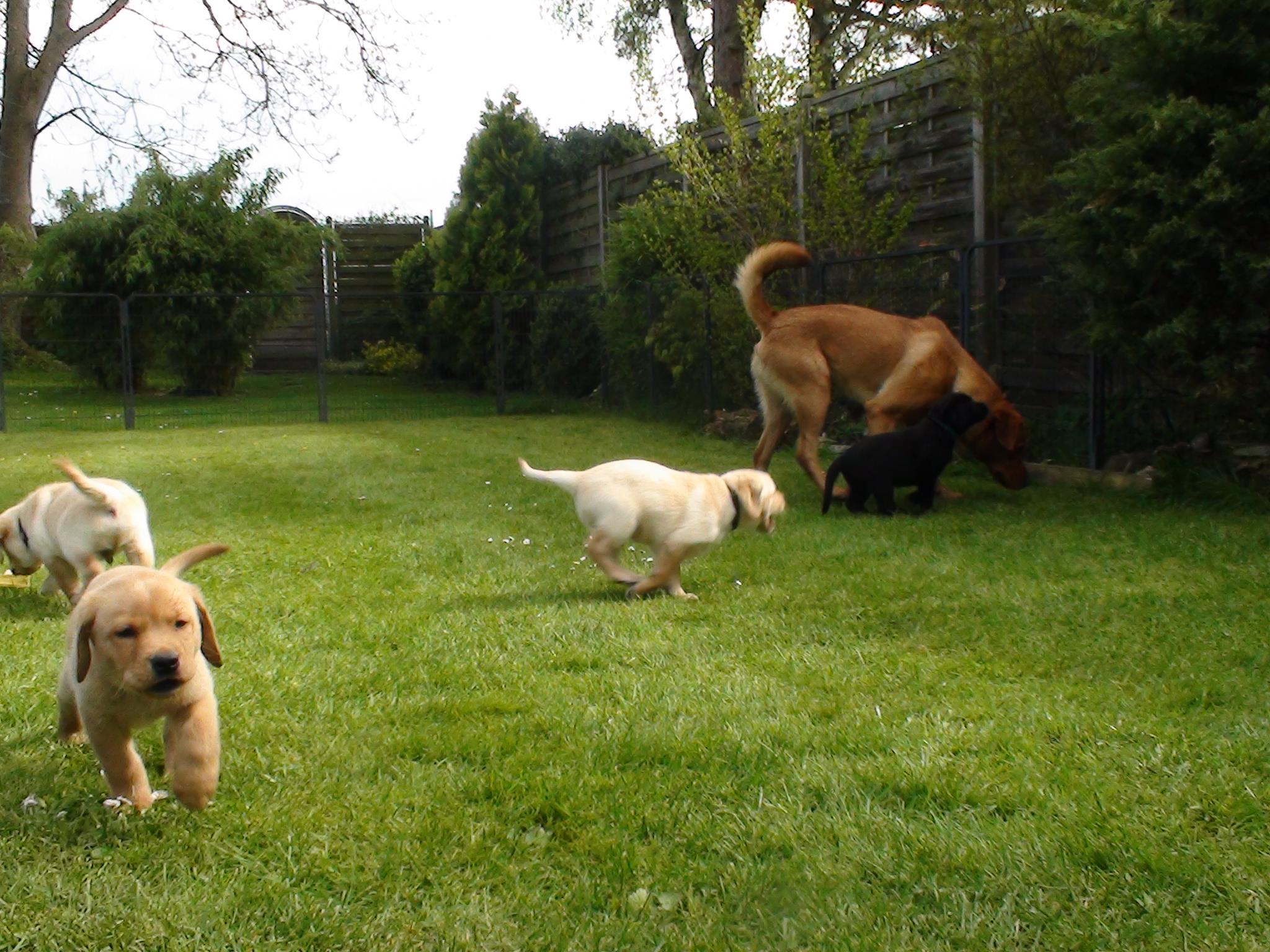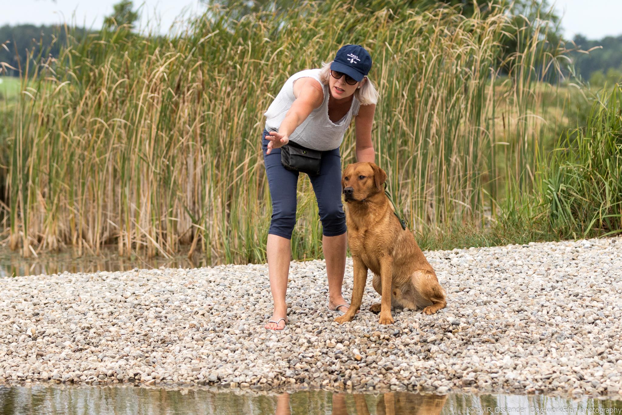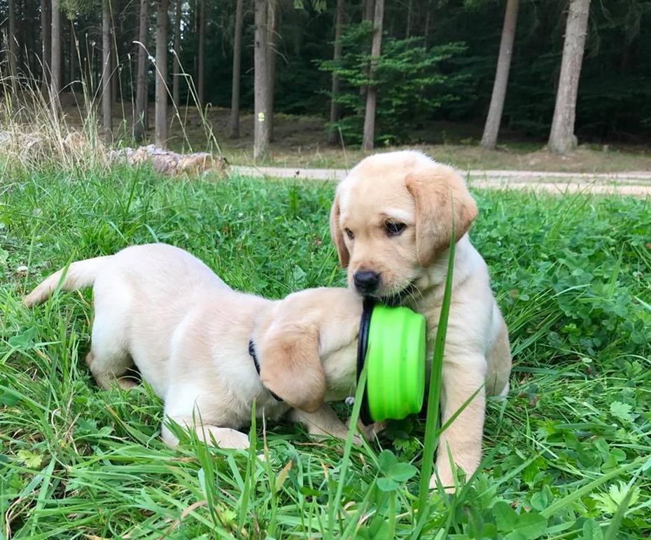 Cain ist ein sehr charmanter, freundlicher Rüde mit einem ausgeprägtem 'will to please'. Wenn wir unterwegs sind, entfernt er sich nie weiter wie fünf Meter, überwiegend direkt um meine Beine, außer er ist im Spiel mit seinen Gefährten. Ein extrem leicht führiger Rüde, der auch absolut keinen Ärger will. Sobald er merkt, einer ist ihm nicht wohlgesonnen, weicht er sofort zurück. Sein Apportiertrieb ist sehr gut ausgeprägt, nicht nur auf die Dummies, am Liebsten würde er mir alles bringen was er findet. In der Arbeitsauführung ist er sehr ruhig, mit Begeisterung dabei.